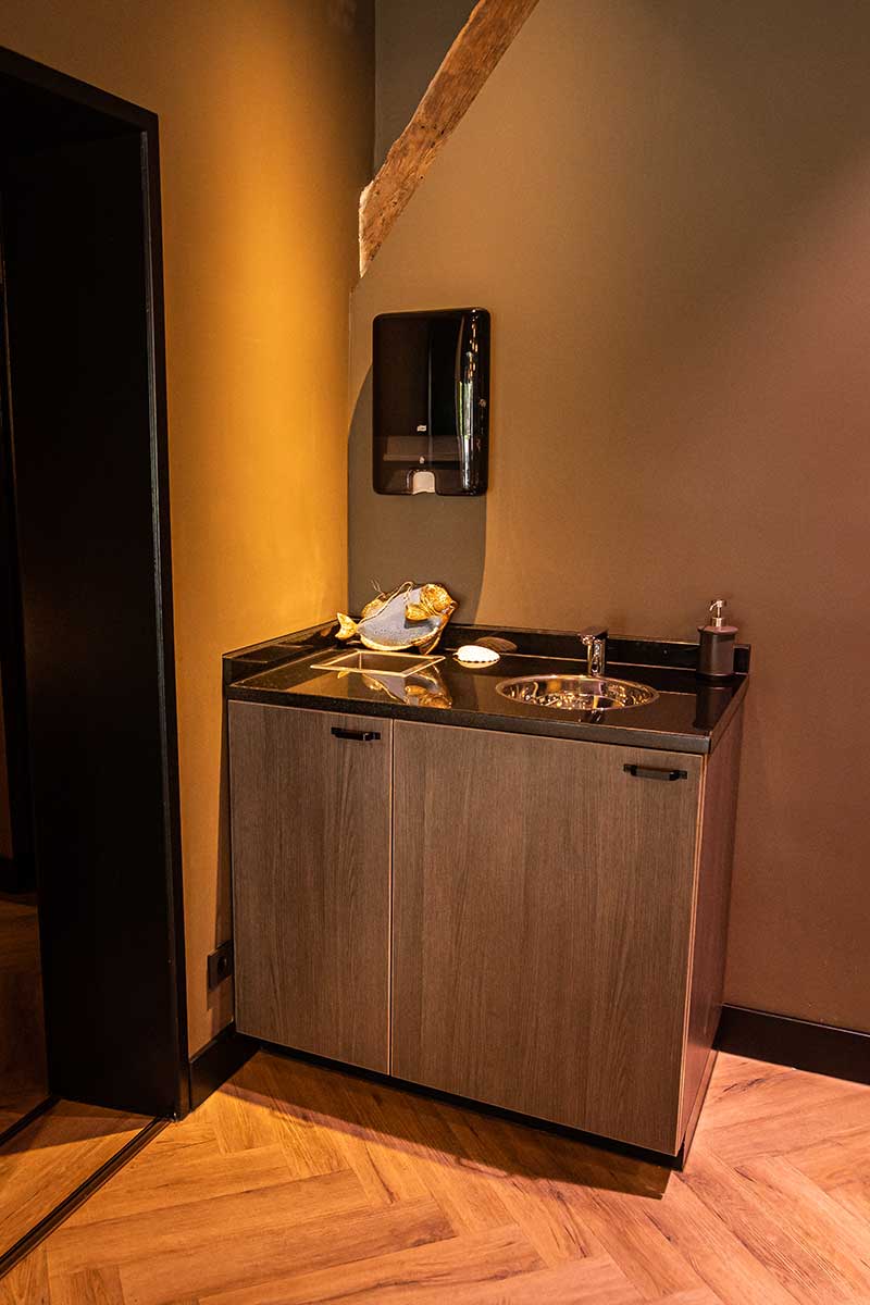 Rick’s Vis had een viszaak in Gronau (D), gevestigd in het voormalige douane-/grenskantoor. Aan de overkant kwam een prachtig, maar vervallen pand leeg te staan. Dit pand bleek bovendien weer op Nederlandse bodem te liggen. Rick vroeg ons om mee te denken en te helpen met het ontwerp en het aanbrengen van de juiste routing. Samen zijn we tot een prachtig resultaat gekomen, waarbij Rick en zijn vader veel werkzaamheden in eigen beheer en met hun eigen handen hebben uitgevoerd en gebouwd.