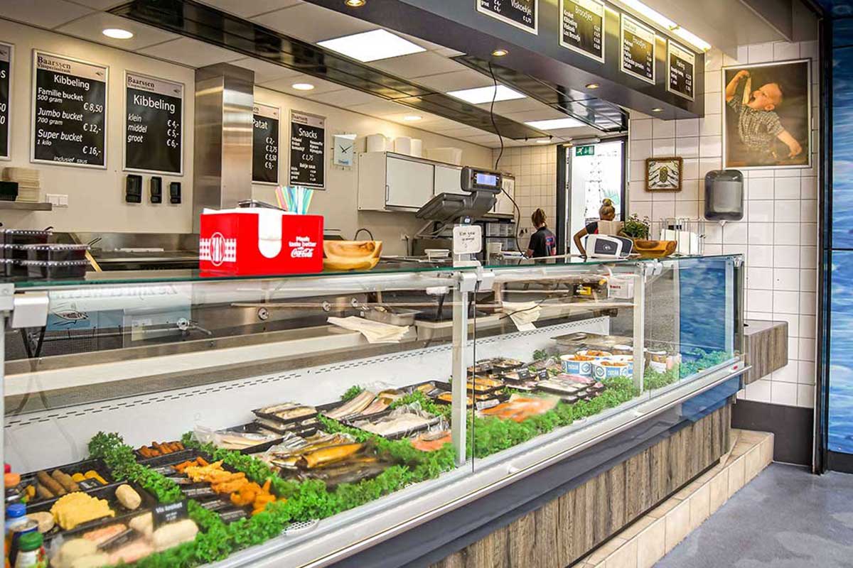 De viskiosk van de familie Baarssen was dringend aan vernieuwing toe. We hebben de gehele kiosk gerestyled en voorzien van nieuwe koelingen, een koelvitrine, maatwerk meubelen, een systeemplafond, wandtegels, verlichting en een nieuwe gietvloer. Ook is de bakoven vervangen.