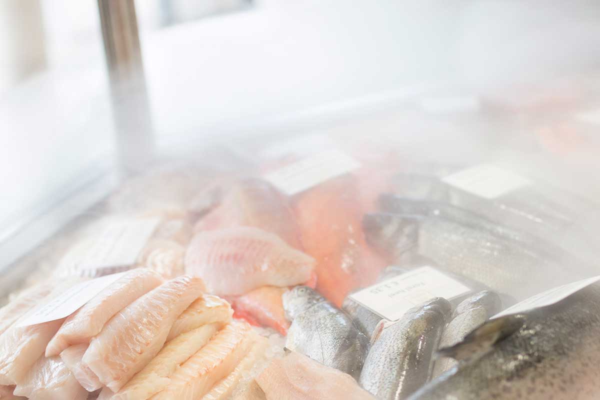 De koelvitrine is uitgevoerd met een ultrasone luchtbevochtiger. Hierdoor blijven de verse visproducten voldoende vochtig en langer vers. De koelinstallatie is separaat in de kelder opgesteld en aangesloten op de koelvitrine.